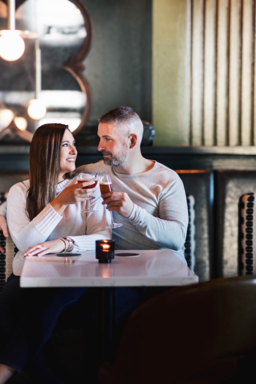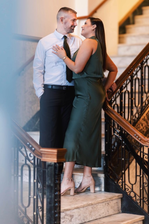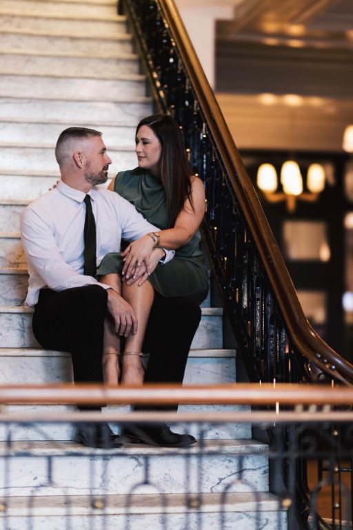 September of 2020, Cody was on the hunt for the perfect home. He stopped by an open house that his buddy Dave told him about that was just down the street from his house. Luckily for Cody, I was the listing agent hosting the open house. We didn't get too much time to speak but we definitely had an instant spark! I was pulled away by the sweetest old man to help him down the stairs.  By the time I came back to keep small talking with Cody he was long gone. I did call Cody later that day about the house since it now had an offer but to my luck, it went straight to voicemail. When I got back to the office on Monday, I made a colleague Facebook search for Cody so I wouldn't get caught creeping. Unfortunately, his profile was secured and we couldn't find out any information. A year later I went on an incredible girl's trip to St. John where I downloaded the dating app, Tinder. When I got back to Sioux Falls, I forgot I didn't disable the dating app, so I went on to turn it off when Cody's profile came up as a Super Like. I figured he's cute - we can match. We started chatting and getting to know each other.  As the conversation progressed and we started talking about going on a date, Cody mentioned that we had previously met. I asked, "really, when?" he said, "at an open house" and I instantly knew it was the tall, beautiful man from a year ago! I of course said yes to the date. We went to Monk's at 6:30pm on October 28th.  I figured we wouldn't be there too long so I had also planned on getting a spray tan at 8:30pm. To my surprise we closed the bar down and we shared our first kiss in the parking lot that night. Two years later in the same spot he got down on one knee to ask me to be his forever!!